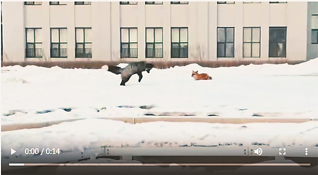 在另一段网友发布的视频中,两只狐狸竟然趴在公寓门口玩耍。看见有人出门,它们并没有被吓跑。当学生递给它们火腿肠的时候,它们好奇地凑上来嗅嗅,随后叼走。它们还会在公寓楼下的雪堆刨出一个洞,作为冬天栖身的场所。