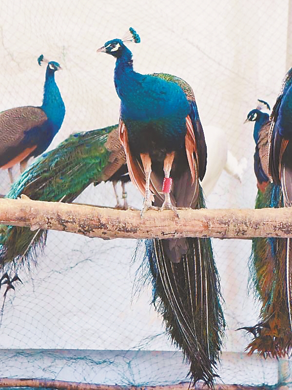 随着冬季的来临,“猫冬”的蓝孔雀纷纷换上了崭新的华美外衣,从头颈到腹部宝蓝色美得亮眼,身披翠羽光彩熠熠,尾羽修长闪耀紫、蓝、黄、红,光彩夺目。雄性的蓝孔雀还会傲娇地抖动尾羽,发出“沙沙”声,吸引异性的目光。爱美的蓝孔雀哪怕是“猫冬”不出门,也会时刻保持最好的形象。