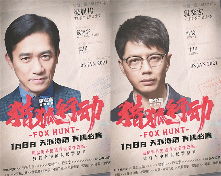 1月份犯罪题材电影迎来了大丰收。由梁朝伟、段奕宏主演的《猎狐行动》,讲述了中国公安部经侦局猎狐专项行动小组,跨境追捕被列入国际“红通”名单的金融犯罪嫌疑人的故事。据悉,梁朝伟在片中饰演“红通”经济犯罪嫌疑人戴逸宸,为了权钱利益不择手段。而段奕宏饰演的经侦民警苦追戴逸宸七年,期间经历种种危难都毫不退缩。