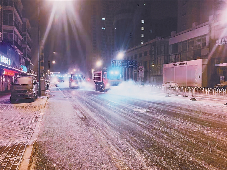 生活报讯 (记者李丹) 6日2时许,哈尔滨市迎来了新一轮降雪,为确保即将到来的早高峰道路通畅,冰城清雪大军以雪为令、迅速集结,第一时间在辖市区内开展清冰雪工作。