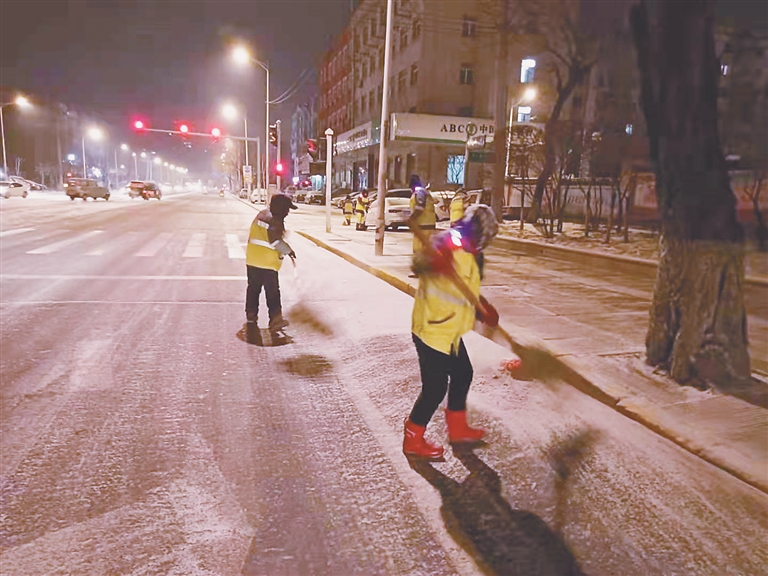 截止到记者发稿时,道外区城管局共出动人员1900余人、车辆机械150余台套,清冰雪人员已开始由主要干道向次要街路延伸清扫。