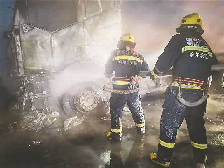 生活报讯 (实习生郝天朔 记者黄迎峰) 1月10日下午16时16分,哈尔滨市通河县消防救援大队接到报警称,辖区岔林河大桥附近一台货车发生自燃事故,且发生油箱爆炸,情况危急。接到报警后,消防部门立即调派救援力量赶赴现场。