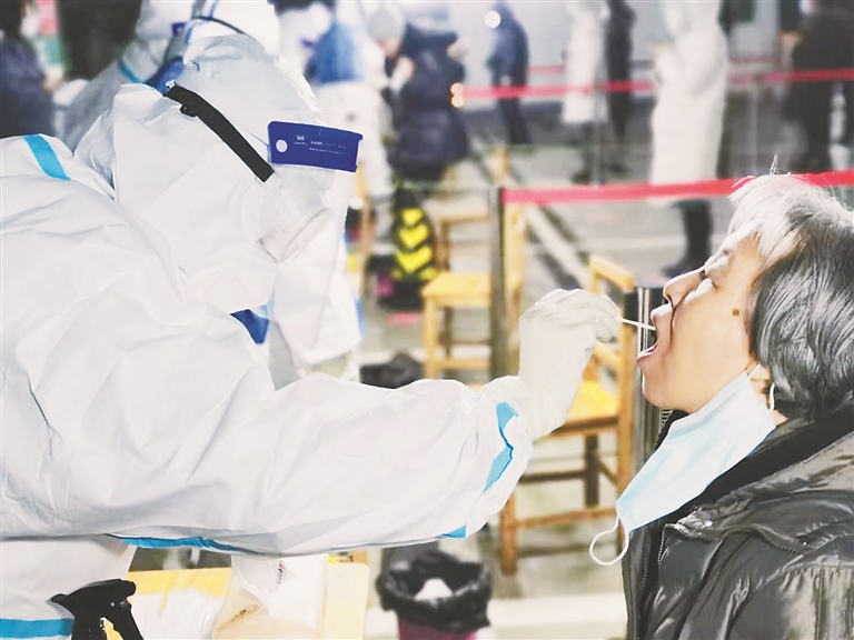 12日,香坊区通天街道第一时间启动应急响应机制,由街道、社区、辖区医疗机构80余名党员和志愿者组成的党员突击队,直插恒祥中山小区支援核酸检测点,引导辖区居民有序进入核酸检测现场,安抚群众紧张情绪,做好核酸检测注意事项的解释说明等工作。