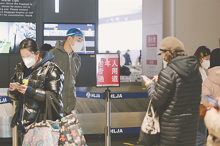 与此同时,哈尔滨机场航站楼出入口及进出港疫控验码区域设置单独通道和人工登记服务台,方便没有智能手机的老年人出行;候机区设置爱心座椅,在摆渡车上设置老弱病残孕专席;机场内所有餐饮、零售店面全部支持现金消费,备足找零现金。老年旅客在哈尔滨机场餐饮店面用餐后,如有需要,店面服务人员均免费帮助送至安检口或登机口。