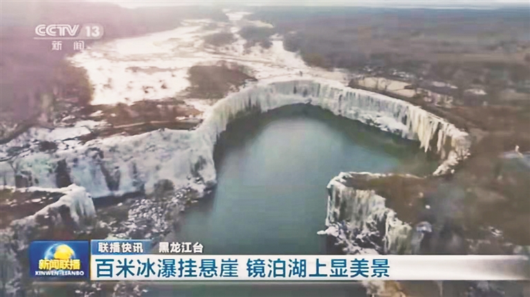 生活报讯 (记者薛宏莉) “寒冬时节,黑龙江镜泊湖吊水楼瀑布水流全部冰冻,形成高20余米、厚达2米的冰瀑,瀑布下的黑龙潭,因有温泉水,常年不结冰。冰瀑与潭水形成了气势磅礴、瑰丽壮观的美景……”近日,牡丹江镜泊湖百米冰瀑的视频登上央视新闻联播,一展“冰雪之冠·秘境冰湖"的魅力。