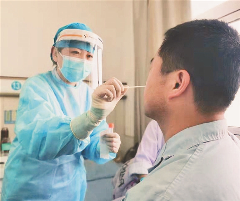 为了保证院内患者、家属以及医护人员的安全,连日来,哈医大一院每组病房采集护士平均每天采集30余个科室,“每次脱下防护服,仰起头,都能一口气喝下整瓶矿泉水。”护士刘月说,“这几天没白忙,我们把全院教职员工的核酸全部采集完成了。”近日,哈尔滨市做核酸检测的人数骤增,最高日采集量近万例。“我们一天的步数超过2万步,每到下午腿酸得挪不开步。”转运护士陈英翔说。