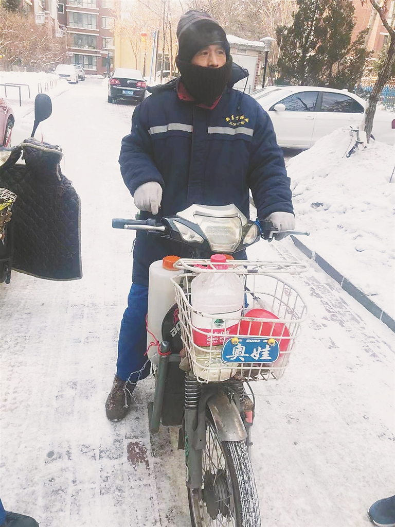 嗡嗡嗡……15日10时,香坊区立汇美罗湾小区内传来阵阵的马达轰鸣声,车的尾部不断释放出白色的烟雾,原来是小区的防疫员艾全和李德华骑着摩托车正在小区内进行消毒作业。按照部署,为了保障小区防疫到位,他们从本周一开始每天在这严寒天骑行六个小时,用消毒炮喷射消杀整个小区,小区居民亲切地称他们为“小区防疫骑士”。