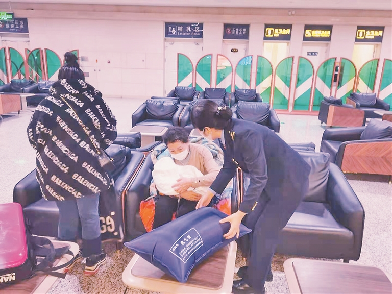 付饶还告诉记者,服务队工作人员的步数能达到2、3万步。他们的工作,不只局限于站内,还经常去哈站南北地下停车场接送盲人旅客。服务台的工作人员大多是女职工。无论疫情严重的阶段,还是进入冬运客流量高峰的时候,他们都能坚守岗位,尤其对于现场突发事件的处理,大家更是积极上手。