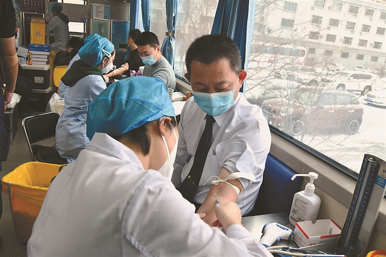 生活报讯 (记者黄迎峰) 20日上午,哈尔滨市血液中心献血车驶入哈尔滨市消防救援支队,支队机关及香坊大队近60名“逆行者”义务献血。
