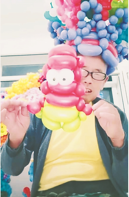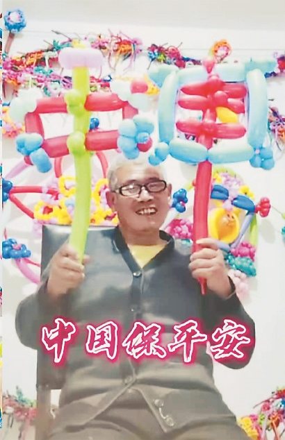 其实,除了各种花样图案,吴大爷还会做汉字气球。去年国庆节,他在直播时用红蓝绿三色气球拼了“中国保平安”,让粉丝们雀跃不已。