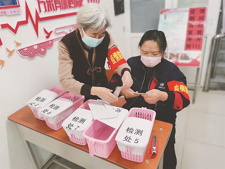71岁的胡秀荣家住万米社区新风小区,看到社区“招募令”,她主动报了名。虽然年龄大了,但她服从安排,每天穿着红马甲,走街串巷劝导不戴口罩或聚集的居民。在她的提议下,社区组建了“社区居家隔离巡查服务组”,主动承担起每天为隔离人员送生活物资的责任,全员核酸检测开始了,她跟年轻人一起忙到深夜。