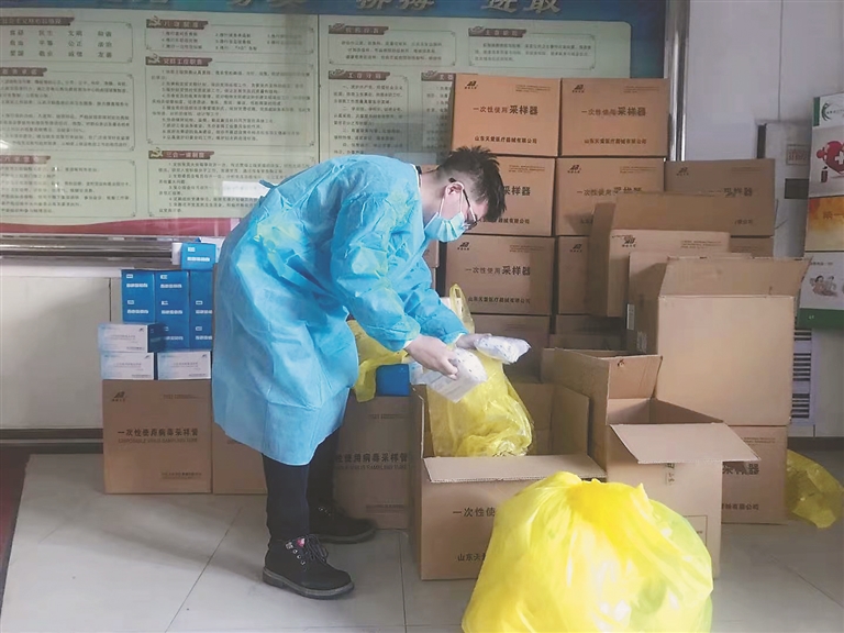 指针走过12点,后半夜的工作电话数量逐渐减少。白冰告诉记者,一有空余的时间,他还需要根据所学的知识,将全区的防疫物资、药品,根据各区域、单位的防疫特点及防控需求情况,进行统一拆分、归类、分配并二次打包。30岁出头的他,抱起硕大的箱子搬来搬去,尽管在寒冷的冬季,也忙得直流汗。一大箱的口罩,一分就得20分钟;一次性采样器数量大,为了确保分配数量准确,每次都核查2次,20斤的大箱子,抢时间跑着分发安排……就这样,一夜的工作繁忙而充实直至天亮。