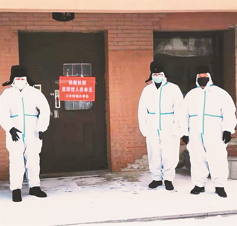 张加梁(左一)在防疫一线工作