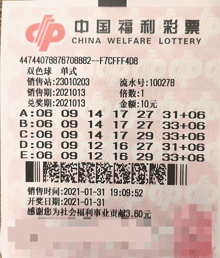 2021年1月,福彩双色球游戏共开奖13期,我省共中出一等奖5注、二等奖41注。5注一等奖花落三地,其中,哈尔滨市2注、大庆市2注、七台河市1注。