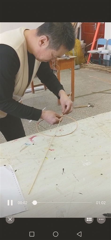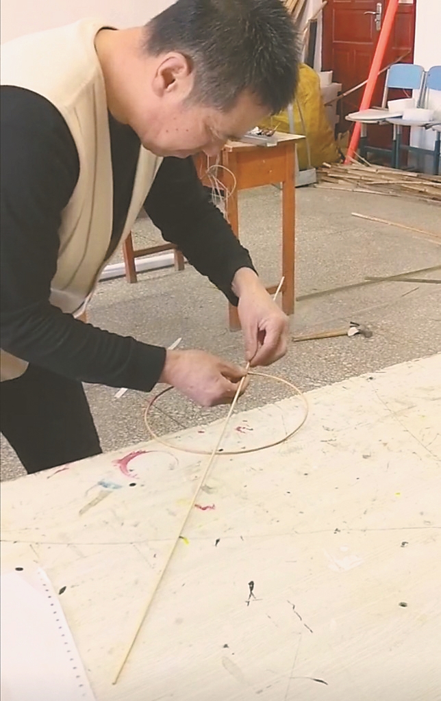 对李师傅而言,雪地作画只是他的一项“业余爱好”,他最喜欢是制作风筝。