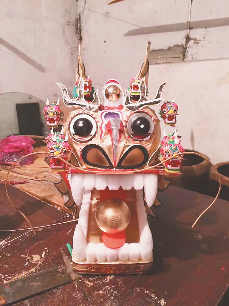 说起制作风筝的事儿,李师傅滔滔不绝。他最擅长的是制作龙型风筝,已经制作了十余个。从找材料到绘画,他全都一手包办。记者看到,李师傅画的龙头惟妙惟肖,大大的眼睛,张着大嘴,嘴里含着一个金色的圆球,龙须子是用竹子制作的,还涂上了颜色。更为惊奇的是,这个“巨龙风筝”长120米,足足花了一个月时间才完成。