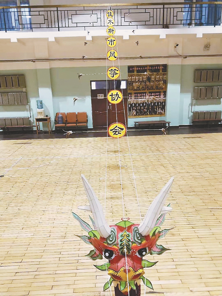 喜欢放风筝 曾花一个月制作120米“巨龙”