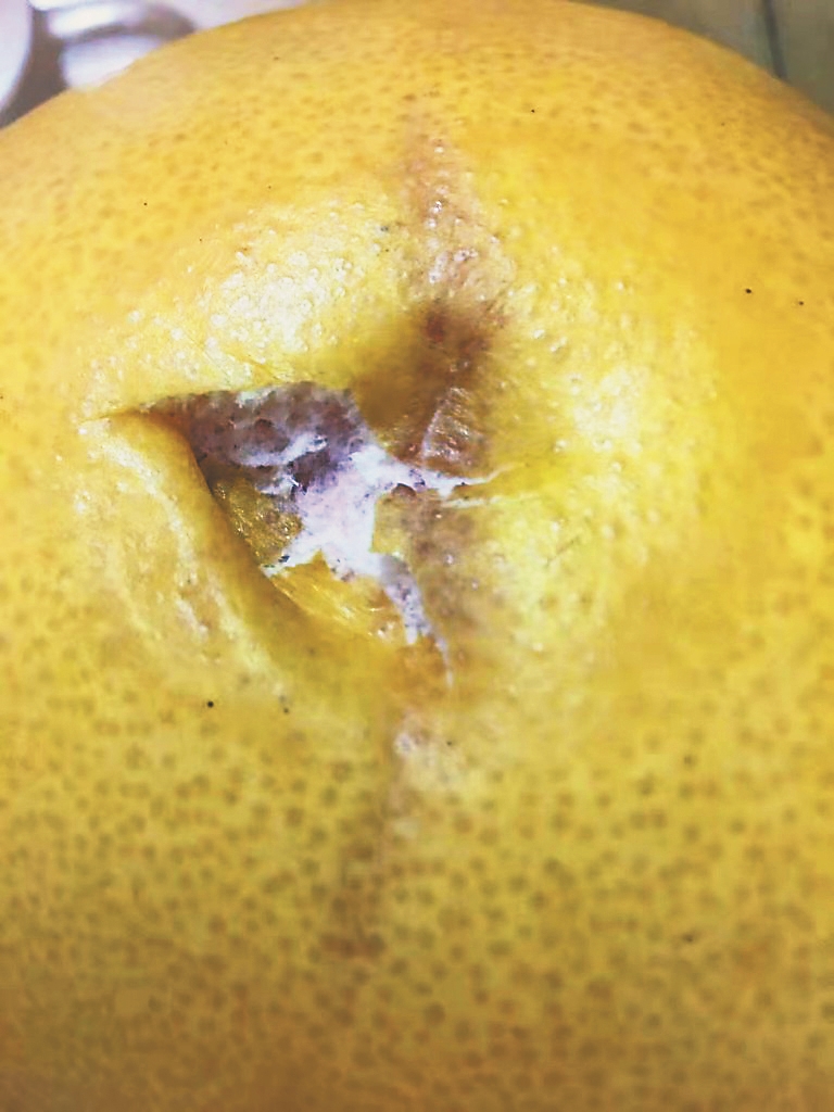 记者看到,这个柚子的柄附近原本是绿色的皮已经变成了灰色,变霉面积有鸡蛋大小。在没有得到回复的情况下,唐女士5日又拨打了消费者投诉热线,接线员也进行了登记。