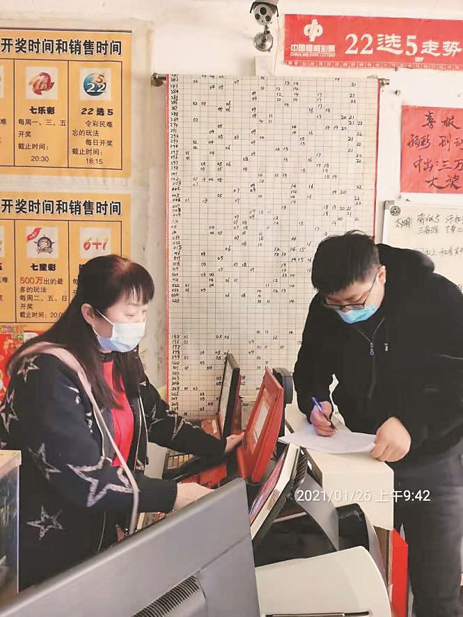 生活报讯 (记者李丹) 近日,七台河市福彩中心为进一步做好福彩销售站疫情防控工作,开展了疫情防控及安全隐患大排查工作,市福彩中心工作人员分成七个小组,连续不间断地对全市福彩销售站进行了检查督导。此次主要对福彩销售站落实扫码(行程码和健康码)、测体温、戴口罩、消毒、通风、保持一米以上安全距离、即买即走、减少聚集等情况,以及存在的安全隐患进行了检查和督导。目前已经对全市200余家福彩销售站进行了四轮排查,共检查督导销售站800多次。检查中发现30余家福彩销售站存在只验行程码或验码不认真、个别彩民不戴口罩、吸烟、通风不好等现象。