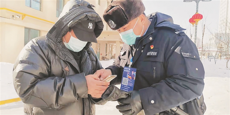 赵亮告诉记着,在防控期间,还有一件让他自豪的小事,他利用长时间在小区内外值守,频繁接触居民的契机,带着一个下载小程序的二维码,向辖区居民推广哈尔滨市公安局设计的防止电信诈骗小程序“金钟罩”,取得了明显效果。