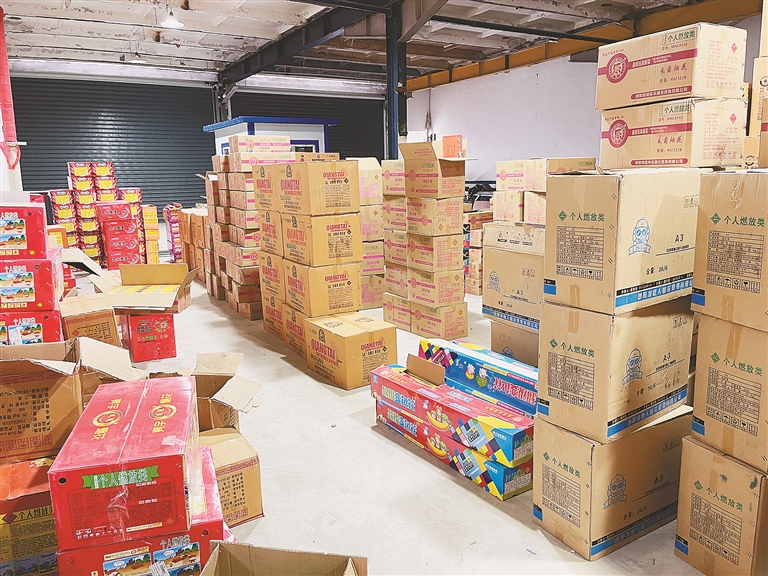 生活报讯 (记者黄迎峰) 17日上午,哈尔滨市香坊公安分局幸福派出所在组织警力对辖区重点区域、重点场所开展“地毯式”排查清查行动中,在某仓库门前,发现有人正在此处装卸烟花爆竹,并且卸货的仓库总有人进出,巡逻民警立即上前询问情况, 现场将货主王某进行控制。