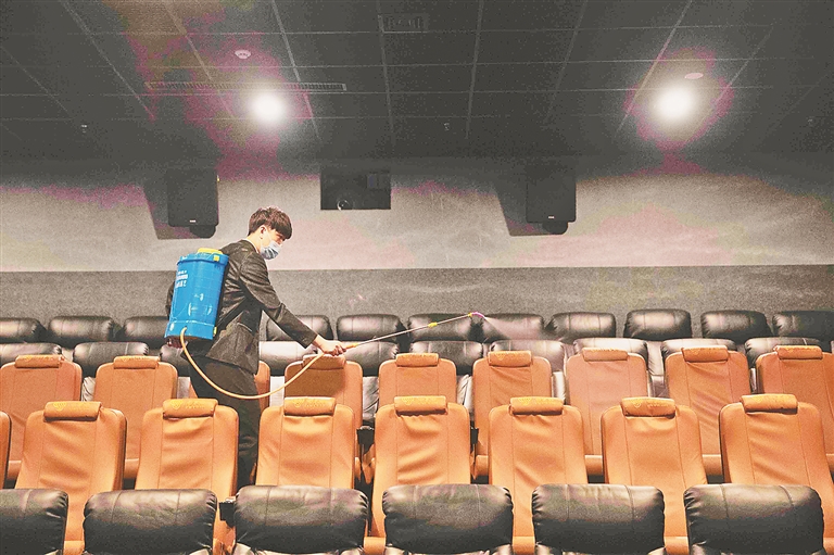 此外,各电影院会全部采取网络实名预约、无接触方式售票;并承诺按要求对大堂、影厅、卫生间、走廊、疏散通道等公共区域,每日不少于2次喷雾消毒;对座椅、入口闸机等重点区域,每日不少于5次擦拭消毒;对影厅座椅扶手、3D眼镜等观众直接接触物品,每场消毒一次,且会在影院入口配备消毒剂,引导顾客做好手部消毒。