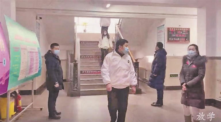 放学时,学生离校均保持1.5米以上距离,各班错时放学,各班按指定路线有序离开。放学后,消杀组对教学楼进行全方位无死角消毒。
