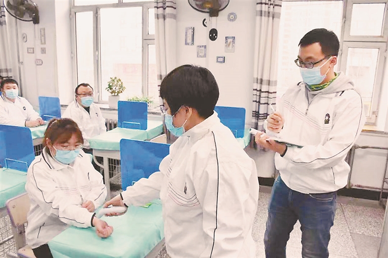 生活报讯 (记者吕晓艳) 3日,哈尔滨市初高中毕业学年学生将迎来新学期,为提高疫情预防控制和应急处置能力,保证新学期正常开学,近日,哈四中、哈一职等学校分别举行入学疫情防控模拟演练。学校开展的校园疫情防控应急演练活动,严格按照疫情防控操作流程进行,由教师扮演学生,开展模拟情景演练,让师生熟悉校园疫情防控的整个流程,提高疫情防范和应急处置能力,做好安全有序的开学准备工作。演练包括入校、进教室、测温、上课、课间、如厕、午休、就餐、放学等内容。