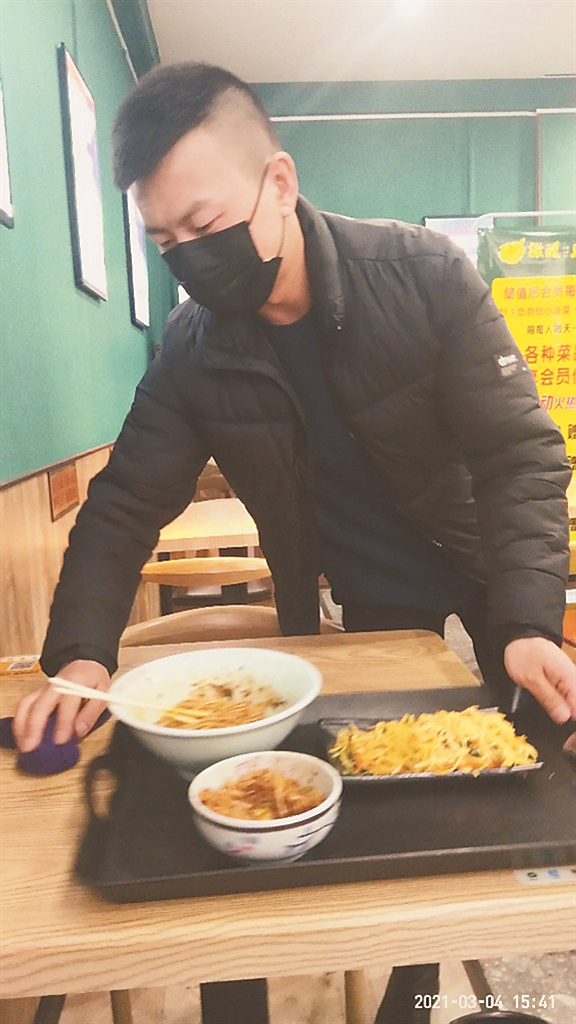 赵继民是漠河人,今年30岁,已经在哈尔滨打拼了9年,有一定积累后投资开了这家面馆。据他介绍,他从小家庭环境不好,家里两个男孩,上学时受到学校和政府的资助,还有爱心人士一对一的帮扶。“靠社会的捐助,我才能把学业完成,现在我有这个店了,就想帮助一些人,然后才做了这个事。”
