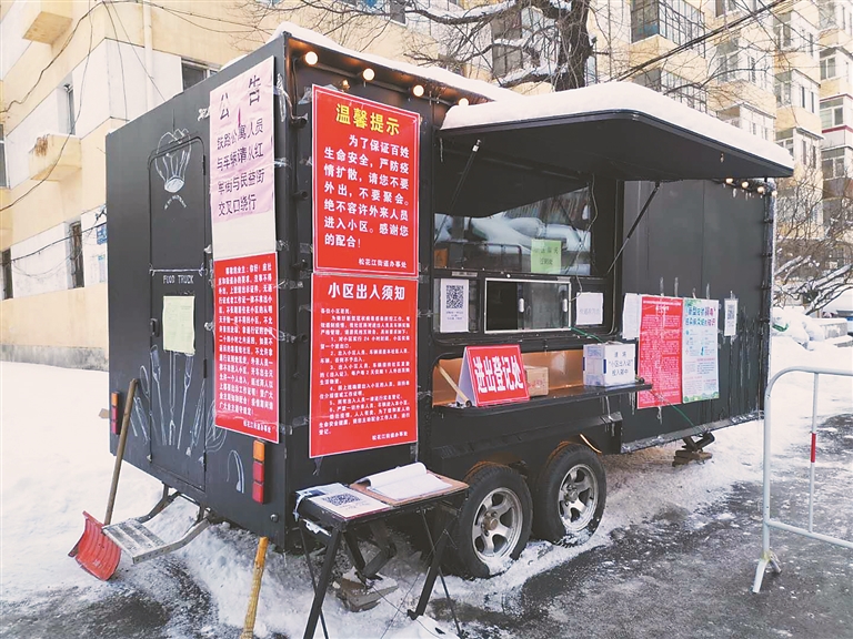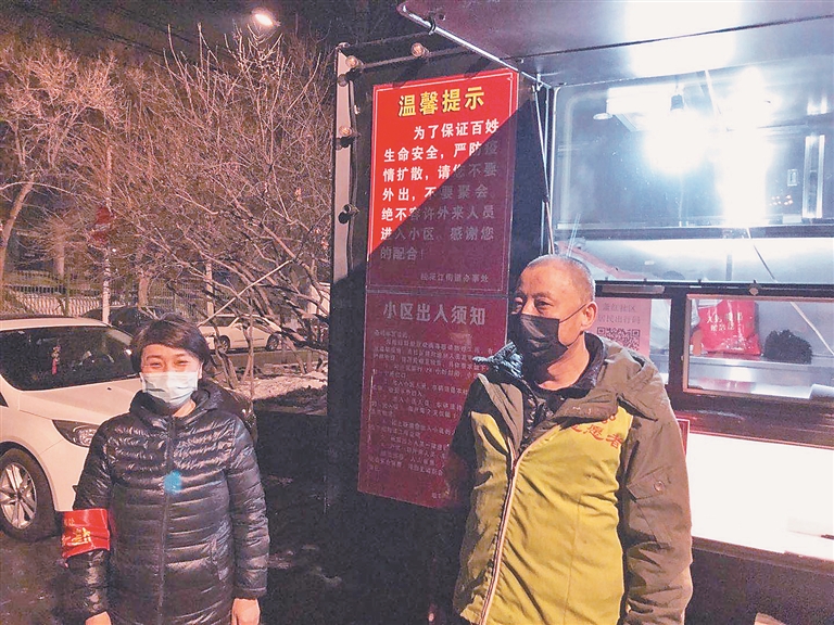 张兵每天值守超过12个小时。在零下30多摄氏度的胡同里站着,寒风凛冽,有时冻得直跺脚,这让他更加体谅防疫执勤人员的辛苦。“这天天在外面冻着不行啊,人哪能受得了啊。”他和爱人王丽娜几经周折,从朋友那里借到一辆简易餐车,在家一番改造后,他把车推到了中学胡同6号,作为站岗人员临时休息的爱心暖屋,屋里有一个小型电暖气,他在小屋四周挂置小彩灯,到了夜晚,色彩鲜亮,给往来的行人以光亮和色彩,令人心情愉悦。其他志愿者都说,比这温暖小屋更热的是张大叔的热心。