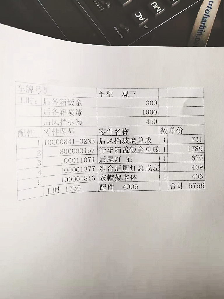 4S店鉴定 维修费需要5756元
