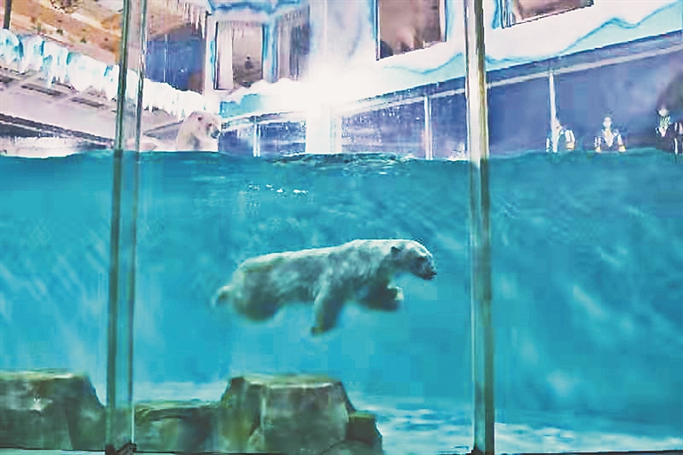 北极熊馆还原真实的北极场景,游客不仅可以看到陆地霸主pk角逐,还可以体验喂北极熊吃美食的极致感受。北极熊馆修建了室外阳光区,北极熊可以到露天室外,溜冰、玩雪、晒太阳;同时,还修建了高科技3D立体互动区,小朋友可以和北极熊、企鹅等极地动物一起,在震撼冰川的环绕中“捉迷藏”。