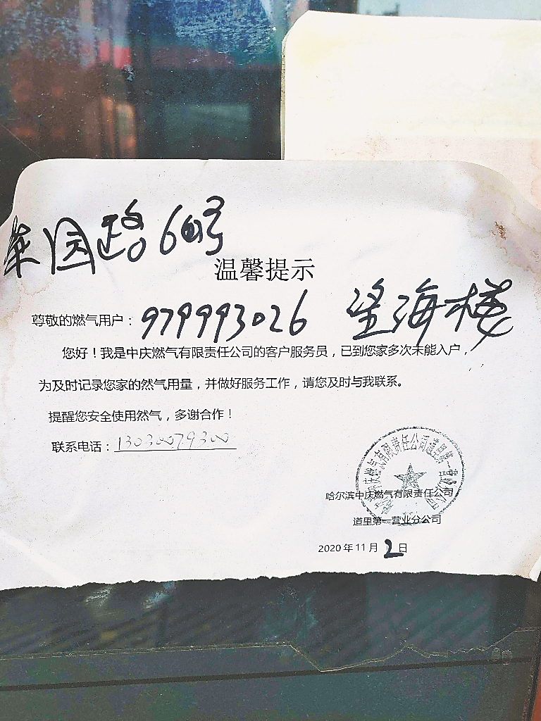 9日,记者来到紫园路60号看到,这里有一栋大楼,敞亮的门脸上写着望海楼字样。隔着玻璃门能看到门口悬挂着“吃喝玩乐 安心回家”字样,但是大门紧锁。记者走到门口看到,玻璃门上贴着一张“温馨提示”,内容大致是因为酒店关门,燃气公司抄表员无法查看其燃气费用。记者试着敲了敲门,无人应答。