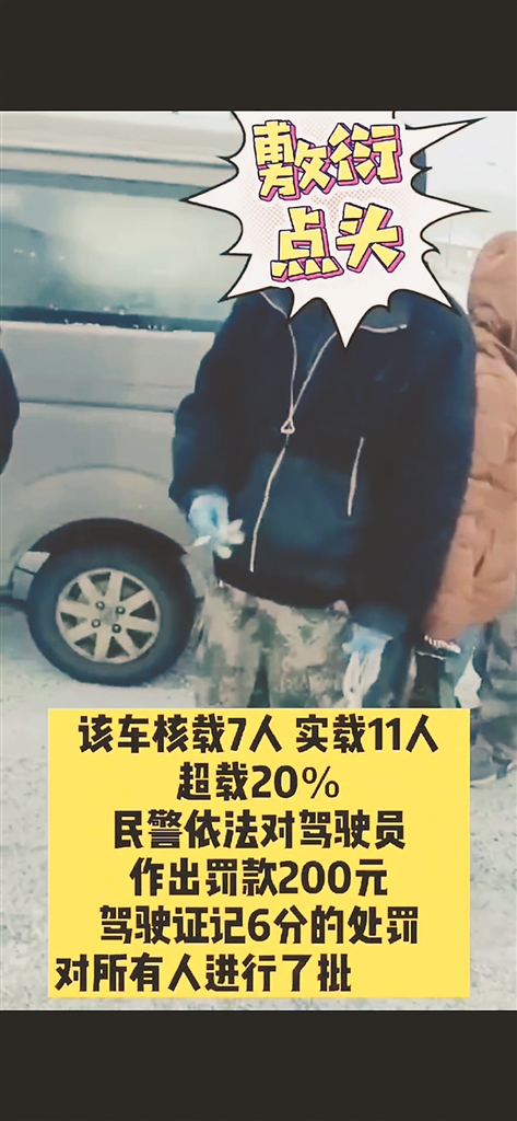 生活报讯 (实习生郝天朔 记者黄迎峰) 3日17时15分许,牡丹江东宁市公安局交警五中队民警在绥阳镇拦截一辆超载面包车。