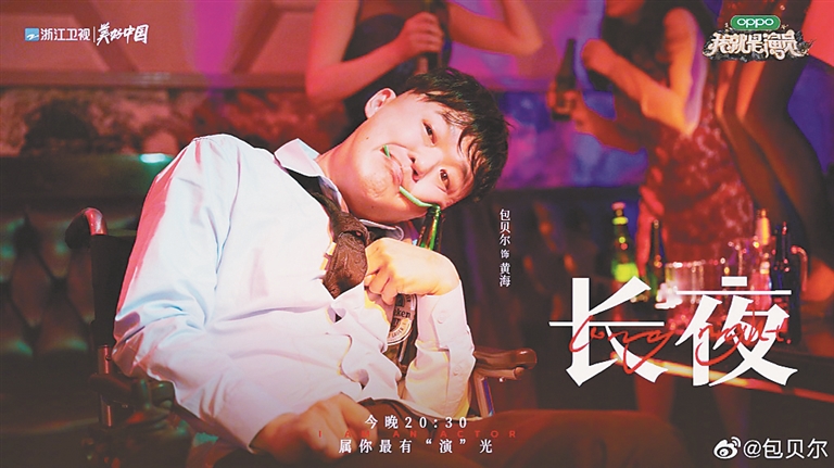 总决赛上,包贝尔在作品《长夜》中饰演了一名渐冻症患者。因为角色,身体和面部无法自由控制,所以表演难度极大。但包贝尔却说,他就是要尝试,控制身体极限,挑战自己。“我来这个节目的初衷,也是想要改变自己演戏的习惯。幸运的是两个月的时间,我扮演了五个完全不一样的角色。”
