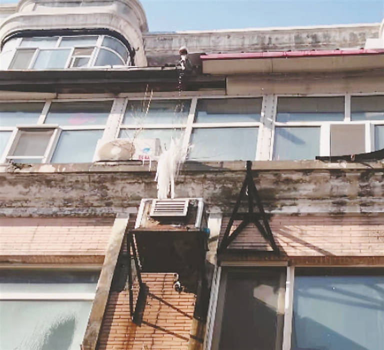 “这冰溜子在房顶挂了好几天了都没掉,现在一开化多危险啊。小心,地上有冰,别滑倒了。这边不朝阳,地上都冻着呢。”居民汪先生对记者说,前段时间下雪,有些雪积在房顶上,最近温差变大,这些雪就在中午气温高时化了,顺着管道、房檐流到了地面上。随着早、晚气温降低,雪水又在地面和房檐上结成冰。对此,汪先生认为,正常这些雪都应该早点清掉的,清掉了积雪就从源头上避免了出现冰溜子、路面积冰的可能,让小区居民出行更加安全。正在记者和汪先生一同在小区内观察的时候,有一块冰碴刚好掉落在了记者和汪先生面前。