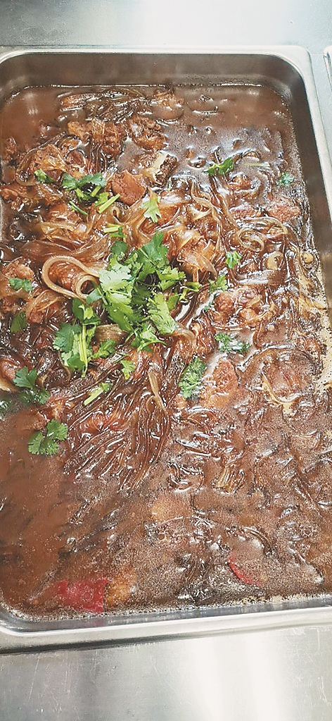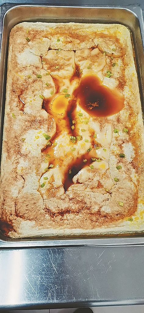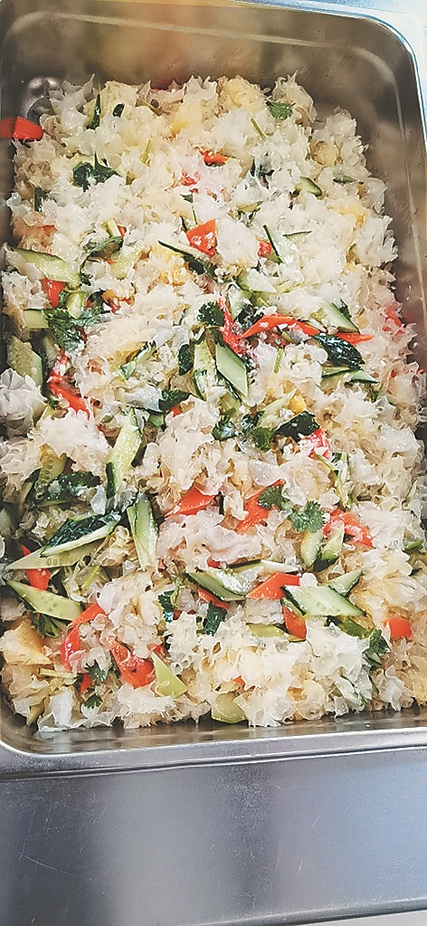 11日,记者在双城区政府二号办公楼看到,在这里办公的有农业局、人防办、审计局、编办等10余个委办局。食堂位于院内的二楼,入门两侧是并排的圆形餐桌,尽头的吧台旁是一个自助餐车,餐车上依次摆放着凉拌银耳、新三鲜、冻豆腐白菜五花肉、鸡蛋糕、大头菜炒辣椒、排骨粉条6个菜,旁边的保温桶内盛放着鸡蛋柿子汤,主食有米饭、发糕。