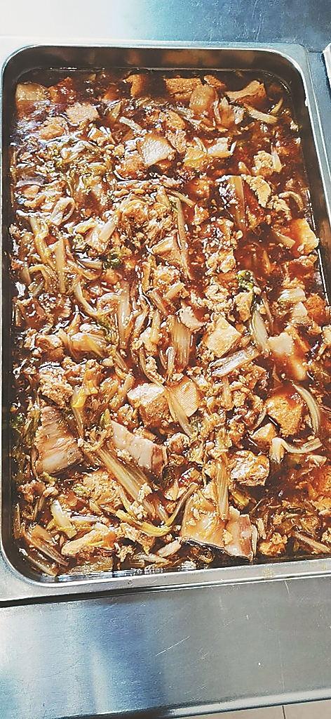前来就餐的公职人员刷卡后排队盛菜。记者在现场发现,也有个别人未刷卡,交的是现金。据食堂负责人王玉春介绍,交现金的是附近居民,食堂疫情好转后陆续对外开放,目前开放的是早餐和午餐。附近居民就餐时间与公职人员一样,早餐6:30-8:30,午餐11:30-12:30。因为周末也有公职人员加班,所以食堂周末也开放。