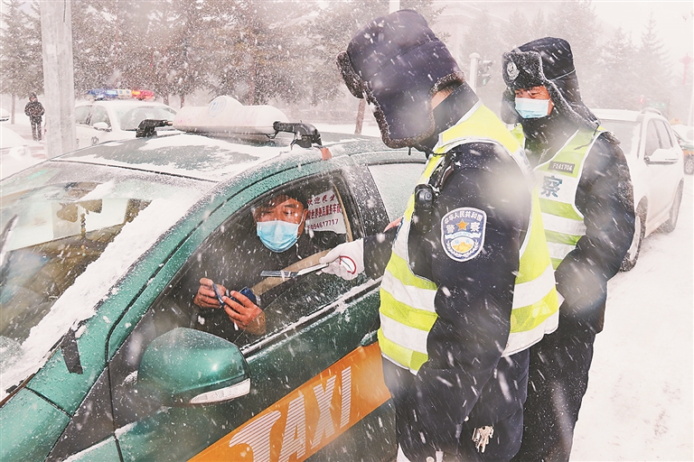 生活报讯 (实习生郝天朔 记者黄迎峰) 15日,漠河飘起了鹅毛大雪,局部风力达到7级以上,漠河市公安局全警出动,派出警力加强辖区社会面巡控。执勤期间,看到站立在风雪中的“白眉战士”,市民纷纷竖起大拇指,给执勤民警点赞。