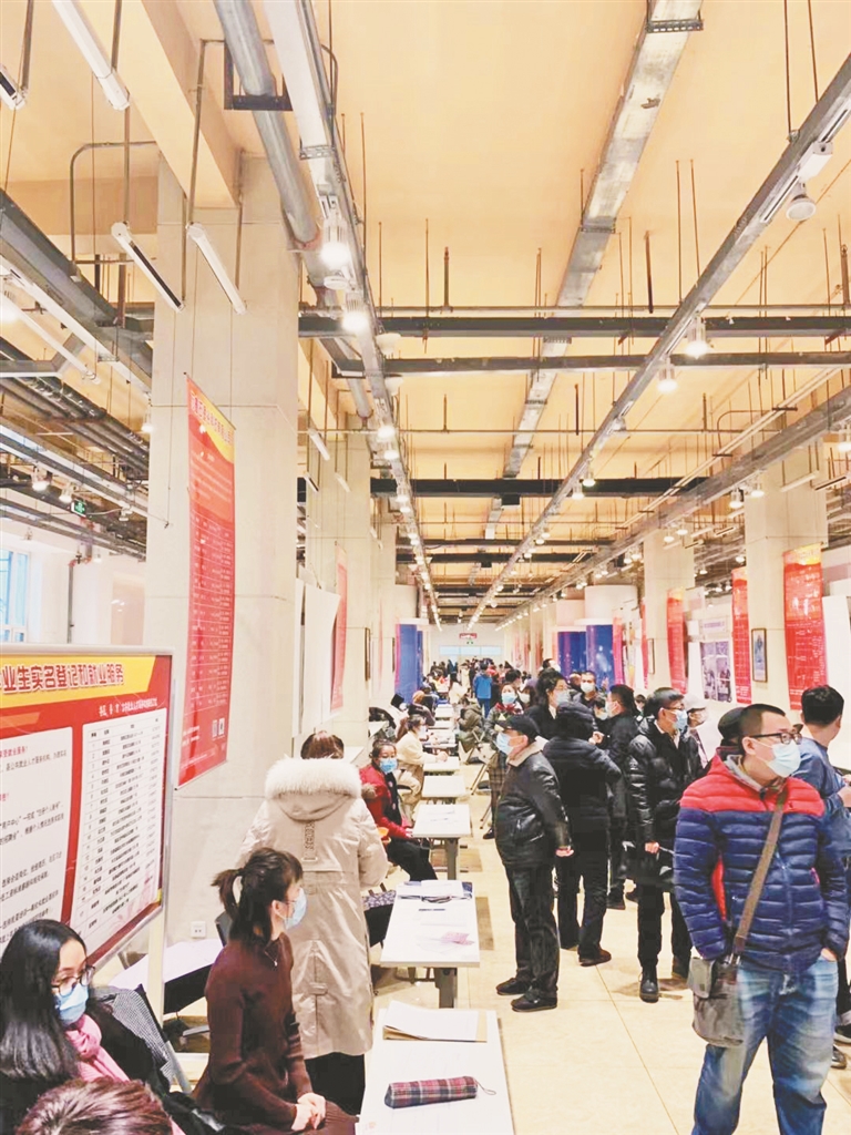 生活报讯 (记者吕晓艳文/摄) 15日上午,“哈尔滨市2021年春风行动暨应往届高校毕业生招聘会”在哈尔滨人力资源中心招聘大厅举行,吸引了60家企业到场招聘,提供岗位328个,参会企业涉及高新技术、装备制造、现代服务、医药食品等行业。