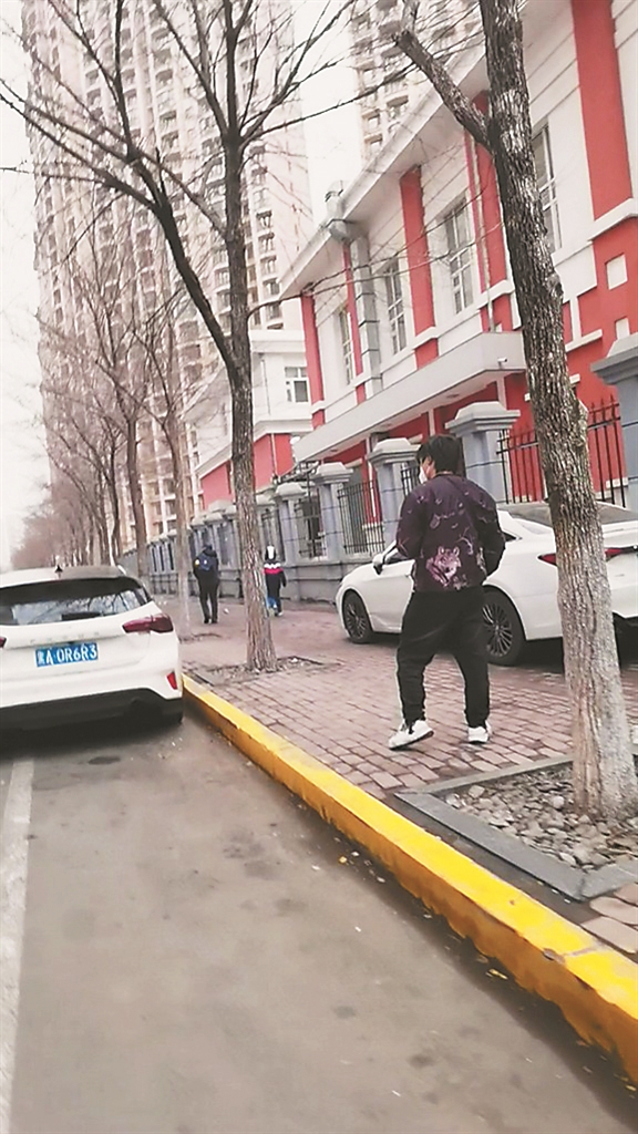 11日是哈尔滨市中小学校全面开学的第一天,当天7时20分许,在哈尔滨市香坊区和祥路上,根据市民的指引,记者来到中北春城小区三期1号门前看到,一名微胖的年轻男子拿着手机徘徊在人行道上。没多久,记者看到,该男子把手机放在胸前,摄像头对准停在路边的车进行拍摄,先拍车头,然后转到车后再次进行拍摄。