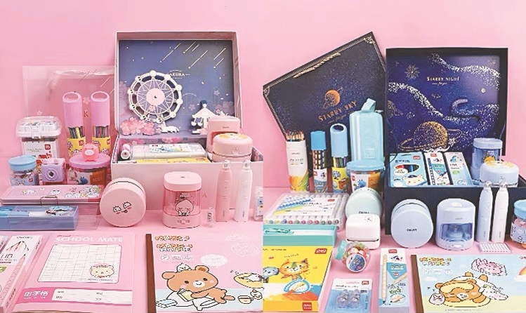 近日,记者来到道里区一处商品批发零售商场,商场四楼主要销售文具类商品,各家入口处最显眼位置都摆放着今年开学季最为新鲜、畅销的文具用品,有的商家还推出了打折、买赠等促销活动。