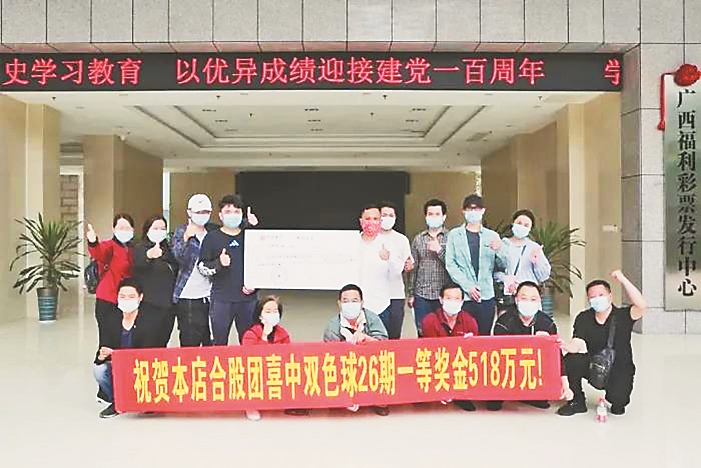 3月15日一早,第一个大奖得主现身广西福彩中心办理兑奖。不少人在开心地谈论着奖金怎么花,原来,这十多位都是中奖购彩者,是合买彩票的团队。