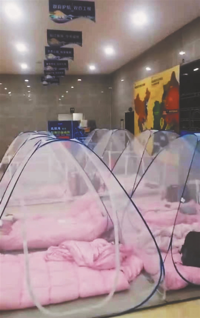 因迟迟不能进户,业主带着帐篷住进售楼部。
