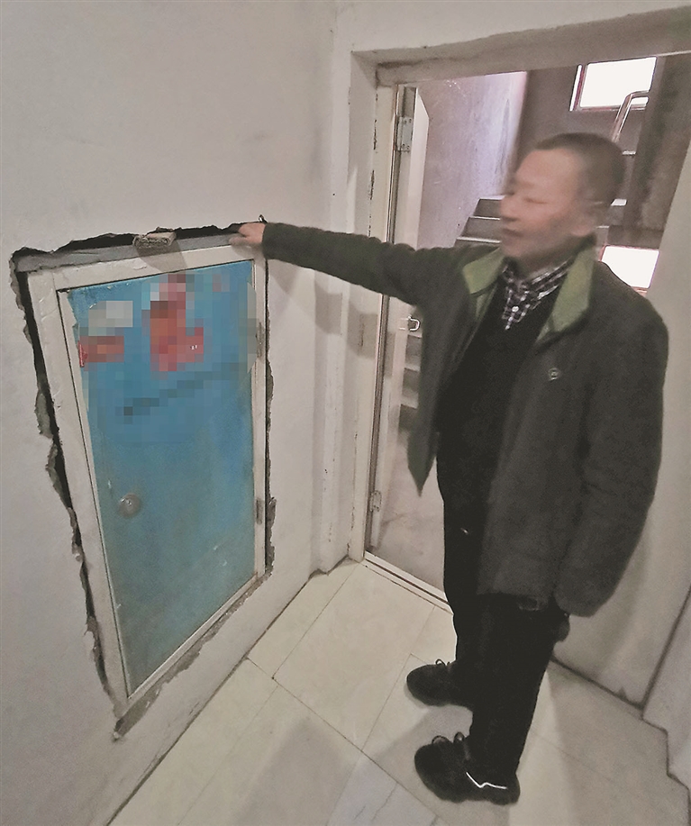 1402室的张大爷打开了门口的消防栓,“这就是个摆设,只有外面的空箱子,里面啥也没有,居民都用来装杂物了。住高层没有防火设施得多危险啊,万一发生火情后果不堪设想。我就想不明白,这两栋高层都没有经过验收,怎么能让居民入住呢?”