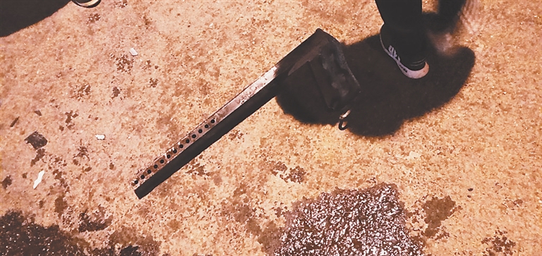 他下车查看发现,路中间有一根一米多长的L形状铁管。先后有8台车受损,其中4台车受损严重、抛锚,有的油底壳磕坏了,有的水箱漏液,有台车的保险杠被磕掉了。