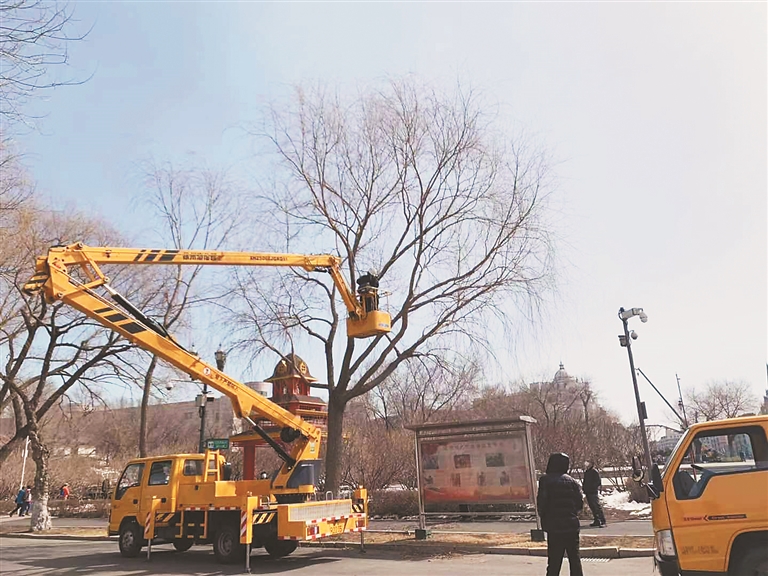23日,记者在中央大街看到,园林局的工作人员正在起降机上,对街路两旁的树木进行修剪。据道里区园林局副局长王雪鑫介绍,通过修剪,树木发芽生长,形状也更美观。“春整”工作开始后,每日出动人数663人,截至3月22日,清理残雪积冰180万平方米,擦洗护栏边石2.244万平方米,清运越冬垃圾3.5吨,维修绿化设施430平方米,修剪乔木1523株,灌木1470株,完成总任务量的35%。