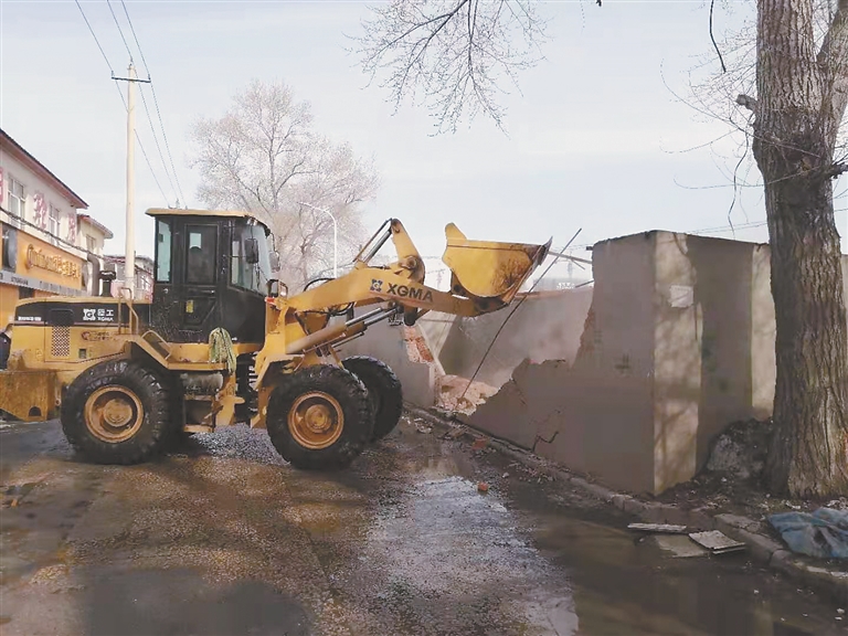 生活报讯 (实习生郝天朔 记者黄迎峰) 伴随铲车的轰鸣,“这段人行道终于通畅了!终于不用再从车行道绕行了!”哈尔滨市先锋路132-29号的居民张大娘说。据悉,在此路段的三处违法建筑一直将人行道牢牢“霸占”,不留一米空隙,附近居民经过时只能从车行道绕行,十分危险。3月23日,经规划部门认证后,哈尔滨市道外区综合行政执法局、化工办事处、辖区派出所对该路段总面积200余平方米违法建筑进行依法拆除。