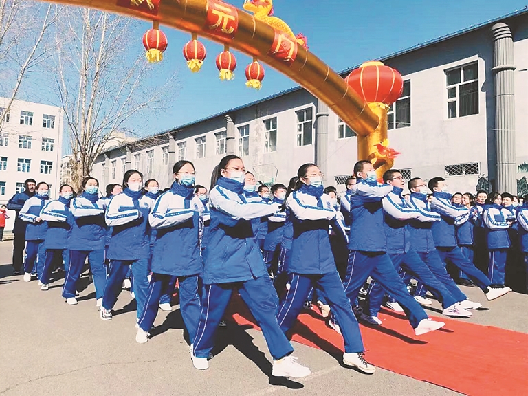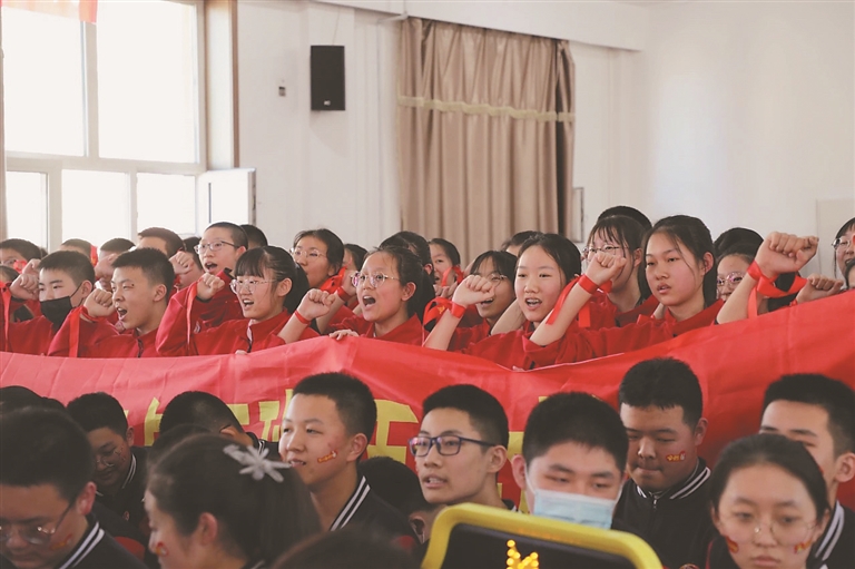 哈尔滨市第一一三中学毕业学年召开了以“百日竞渡旗开得胜 九年磨剑励志凌顶”为主题的迎中考百日誓师大会。师生们自信地走过胜利红毯,跨越属于他们的“成功大门”。学生们举起右手宣誓:“不负父母的期盼,不负恩师的厚望,不负天赐的智慧,不负青春的理想,信心百倍,斗志昂扬,全力以赴,铸我辉煌,2021,中考必胜!”