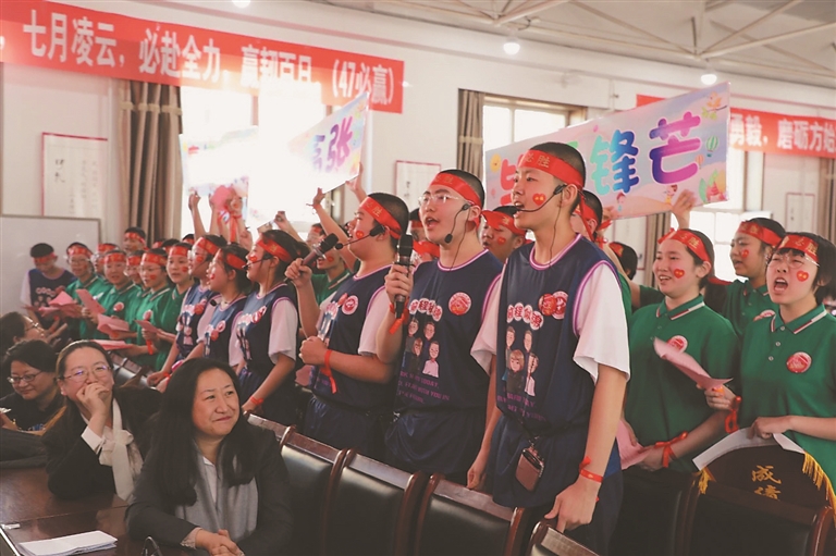 毕业班同学在励志横幅上郑重签名,与100天后的自己约定,珍惜时光、不负韶华。